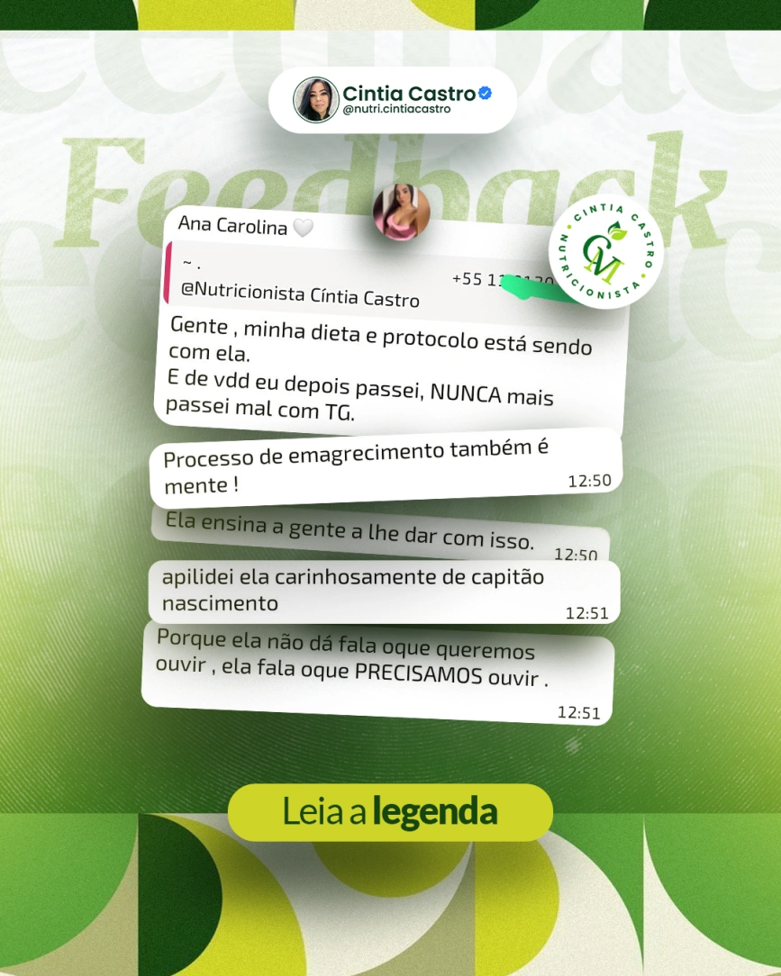 A Ana Carolina relata que, desde que iniciou o acompanhamento com a Nutri Cíntia Castro, sua alimentação e seu protocolo passaram a fazer sentido. O resultado não foi apenas físico, mas também de bem-estar e confiança.